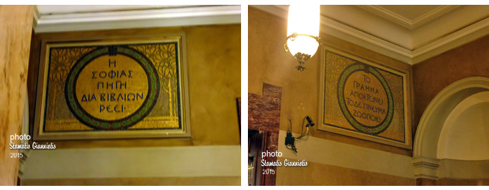 Στη βιβλιοθήκη του πανεπιστημίου της Χαϊδελβέργης παρατηρούμε 2 ελληνικές επιγραφές: «Η σοφίας πηγή δια βιβλίων ρέει» και «Το γράμμα αποκτείνει το δε πνεύμα ζωοποιεί». (από την β’ προς Κορινθίους επιστολή του Απ. Παύλου).
