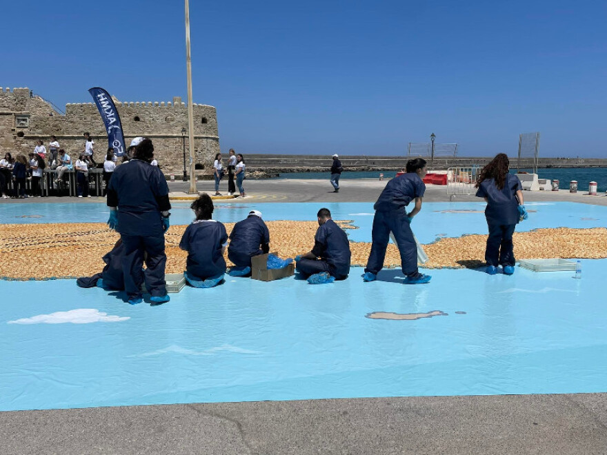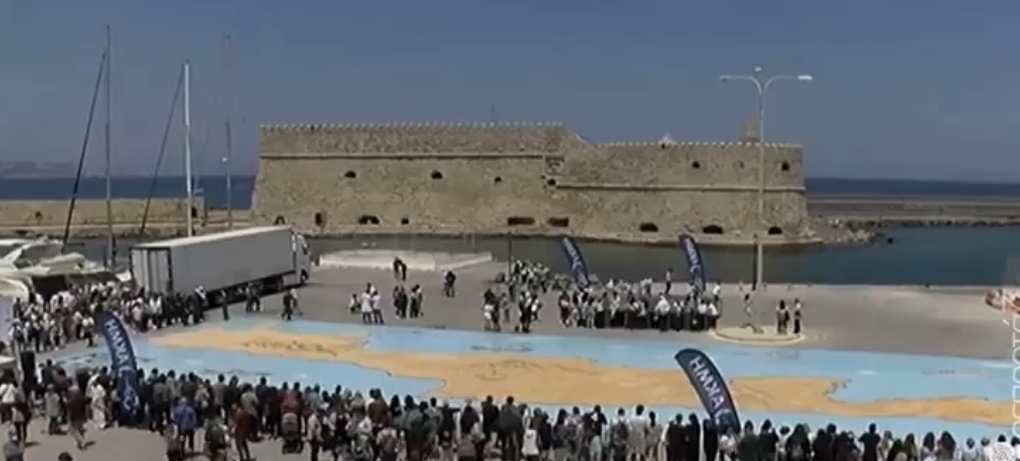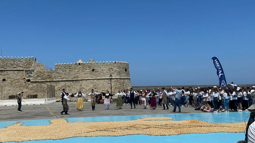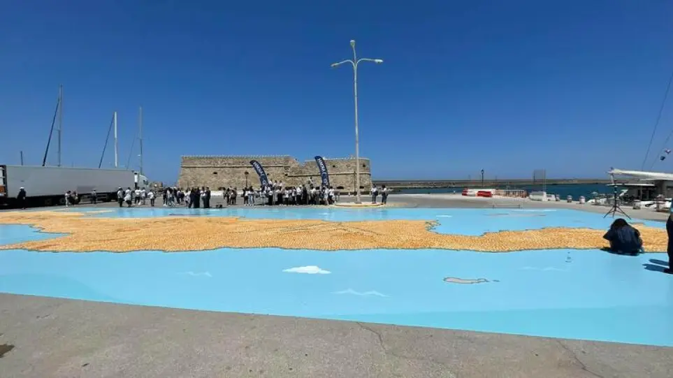 Ο πιο γλυκός χάρτης της Κρήτης σχηματίστηκε στο ενετικό λιμάνι του Ηρακλείου όταν οι σπουδαστές του ΙΕΚ ΑΚΜΗ δημιούργησαν το χάρτη του νησιού με 37.531 καλιτσούνια.