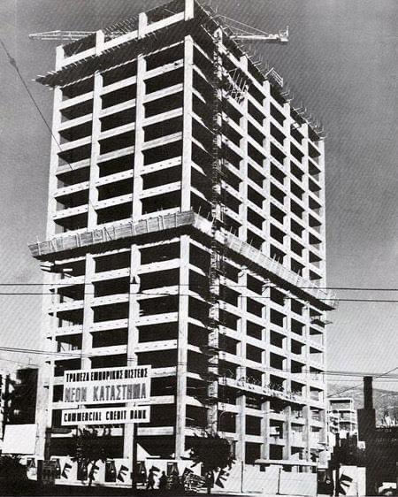Ηταν ο πρωτος “πυργος” -ακολουθησε το ξενοδοχειο President και αυτοι των Αμπελοκήπων …με τον ιδιο νόμο εγινε και το πολυόροφο κτήριο …της Γλυφαδας .