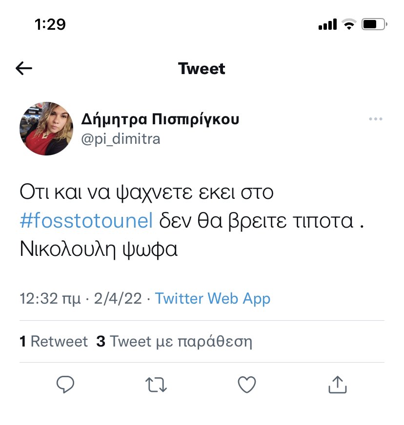 Τέλος μήνυμα μίσους έλαβε η δημοσιογράφος την ώρα της εκπομπής της απο την Δήμητρα Πισπιρίγκου, αδερφή της κατηγορουμένης