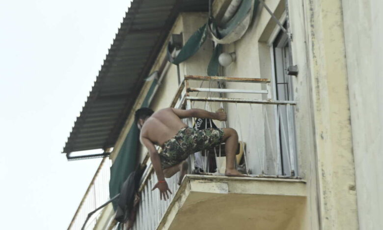 Σύμφωνα με τα πρώτα στοιχεία, ο άνδρας βρίσκεται σε μπαλκόνι του έκτου ορόφου στην οδό Αχαρνών.
