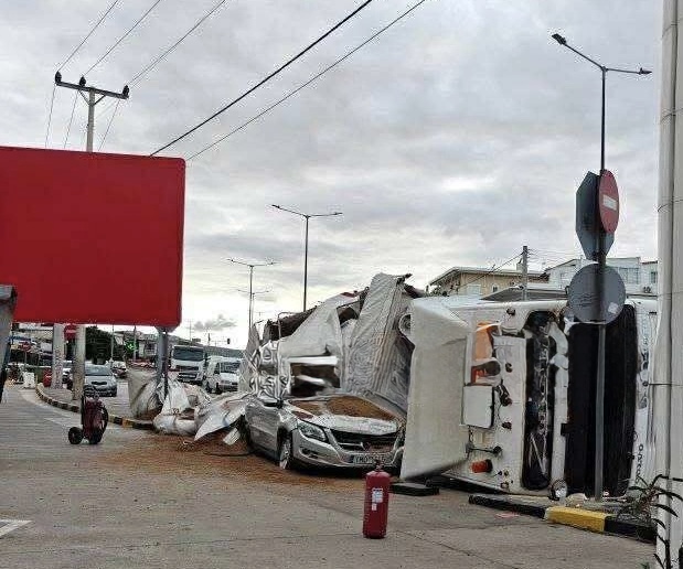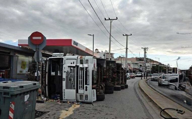Ανετράπη νταλίκα στα Βλάχικα της Βάρης