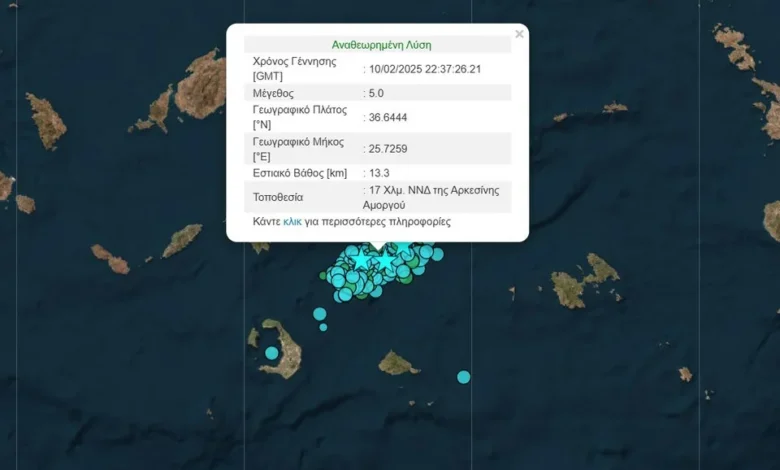 Νέος ισχυρός σεισμός 5 Ρίχτερ λίγο μετά τα μεσάνυχτα στην Αμοργό