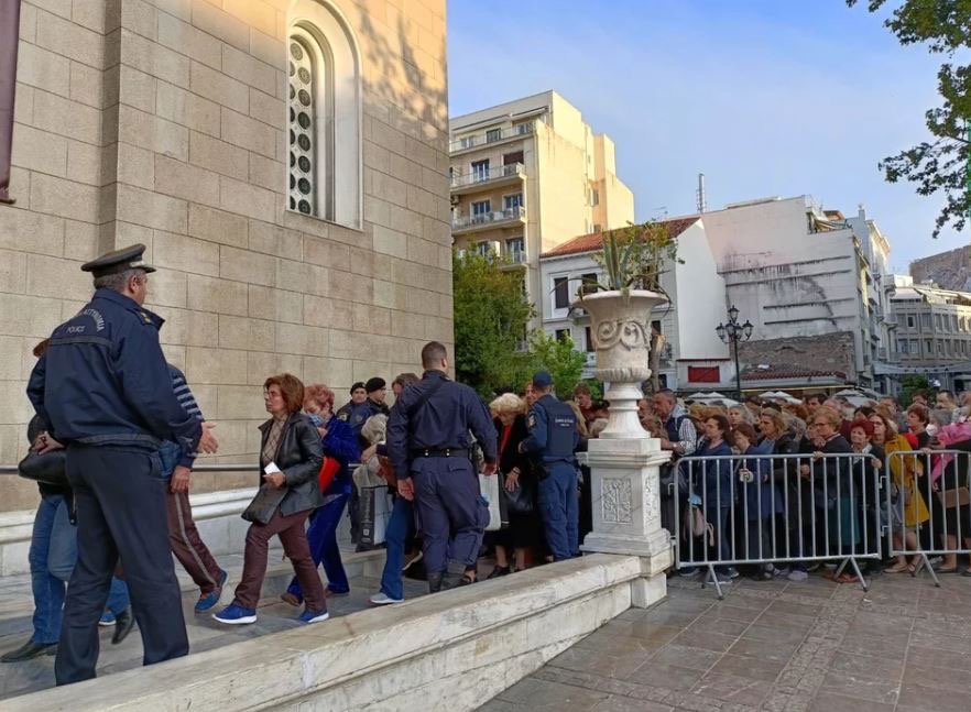 Σήμερα πλήθος κόσμου συρρέει από τα ξημερώματα στην Μητρόπολη Αθηνών για να προσκυνήσει την Ιερά Εικόνα της Παναγίας Άξιον Εστί η οποία θα παραμείνει στην Αθήνα μέχρι τις 15 Μαΐου.