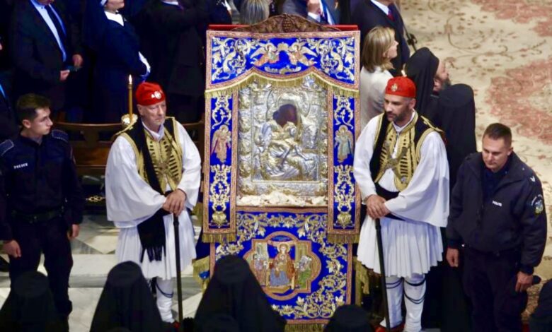 Η εικόνα της Παναγίας «Άξιον Εστί» βρίσκεται απο χθες στην Αθήνα.