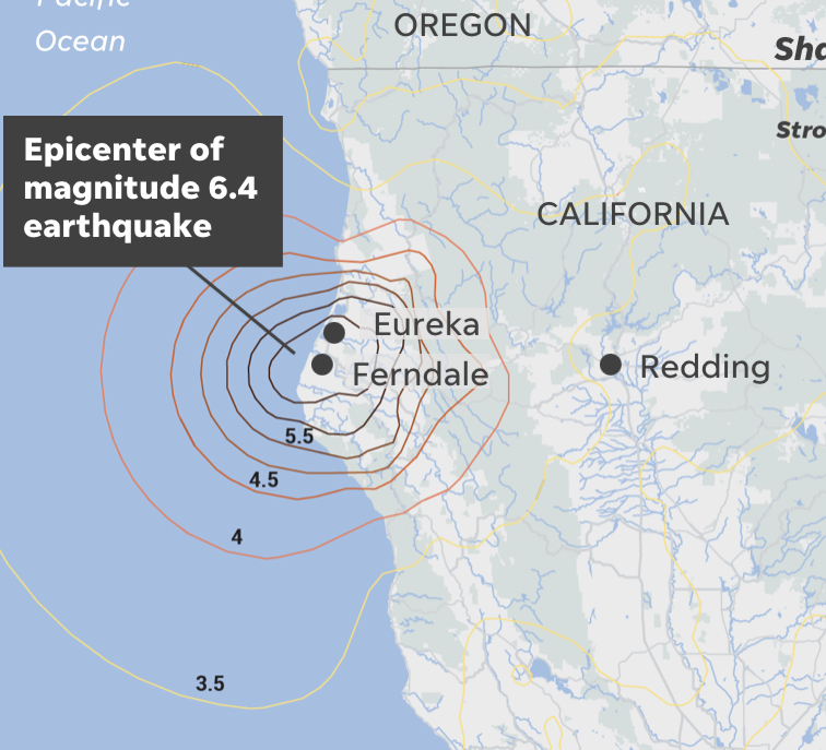 Δύο νοσοκομεία έμειναν χωρίς ρεύμα και λειτουργούσαν με γεννήτριες. Ο σεισμός σημειώθηκε κοντά στο Ferndale, μια μικρή κοινότητα περίπου 345 χιλιόμετρα βορειοδυτικά του Σαν Φρανσίσκο.