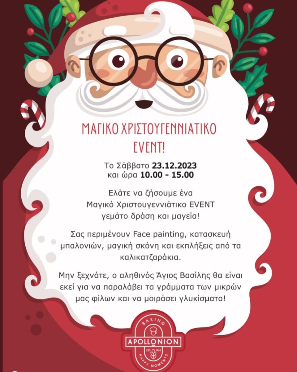 Χριστουγεννιάτικο Μαγικό Εvent το Σάββατο 23 Δεκεμβρίου για τους μικρούς μας φίλους