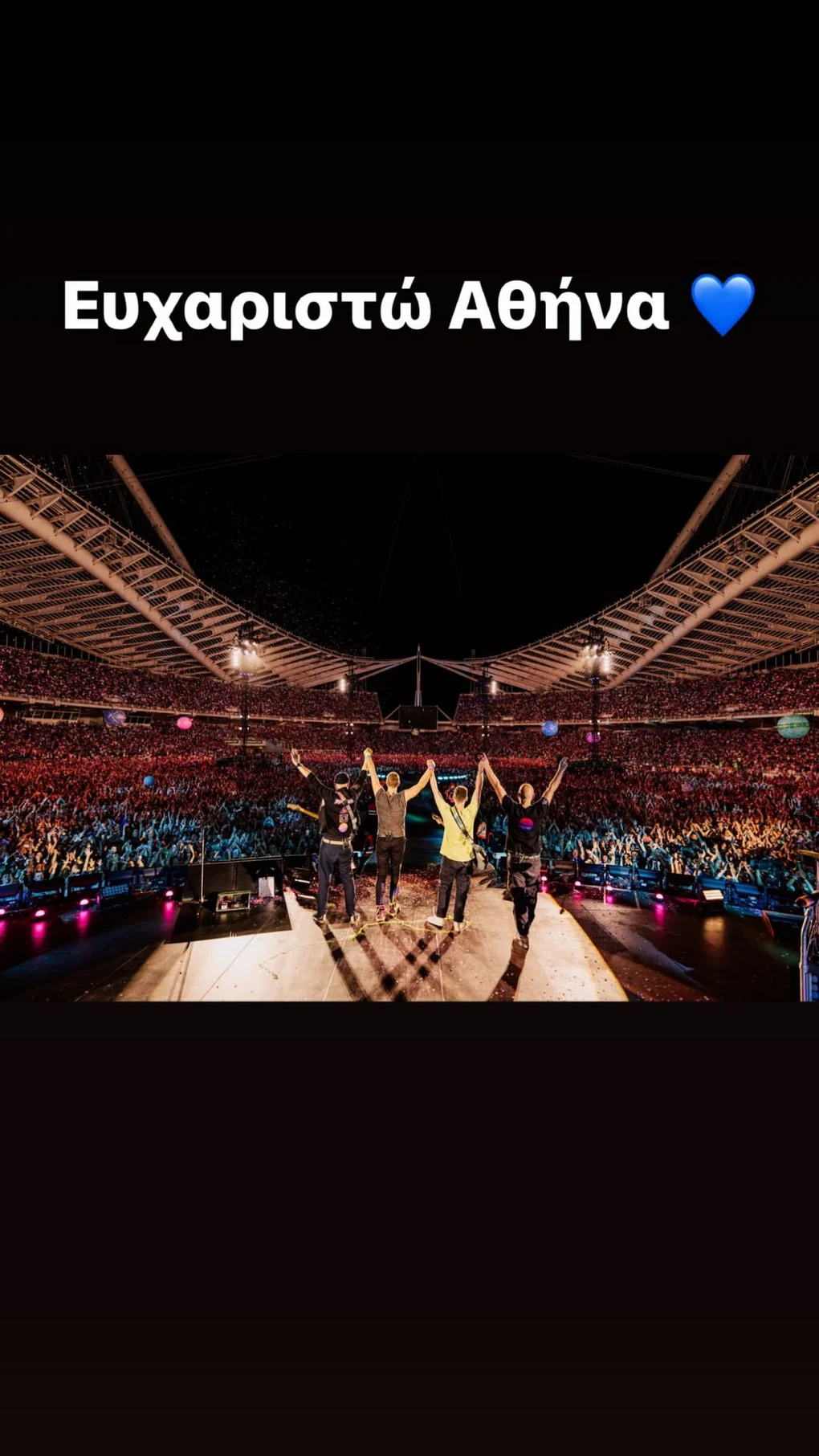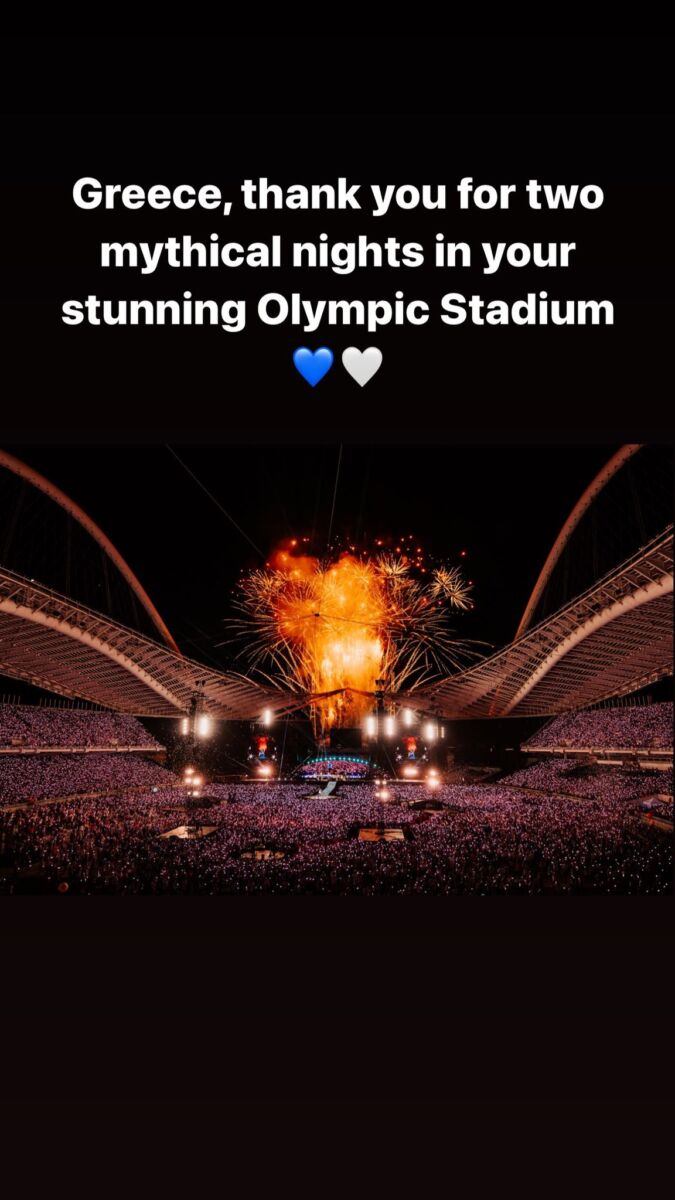 Coldplay : «Ελλάδα, σε ευχαριστούμε για τις 2 μυθικές νύχτες στο εντυπωσιακό Ολυμπιακό Στάδιο»