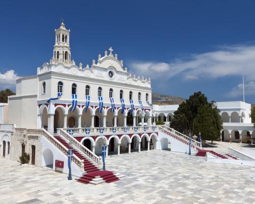 Το μεγαλύτερο προσκύνημα θεωρείται αυτό της Μεγαλόχαρης στην Τήνο. Στο κυκλαδίτικο νησί, που στη συνείδηση των Ελλήνων είναι απόλυτα ταυτισμένο με την Παναγιά του, ο εορτασμός του Δεκαπενταύγουστου αποτελεί τη λαμπρότερη γιορτή. Κάθε χρόνο χιλιάδες προσκυνητές συρρέουν εδώ, ανηφορίζοντας με κατάνυξη προς την εκκλησία για να εκπληρώσουν το τάμα τους στη θαυματουργή εικόνα της Παναγίας. Οι πιστοί, που διανύουν την απόσταση από το λιμάνι μέχρι την είσοδο της εκκλησίας γονατιστοί, η περιφορά του επιταφίου και η μεγαλοπρεπής λιτάνευση της εικόνας σ’ ολόκληρη τη πόλη δημιουργούν κατανυκτική ατμόσφαιρα γεμάτη θρησκευτικό δέος και συγκίνηση.