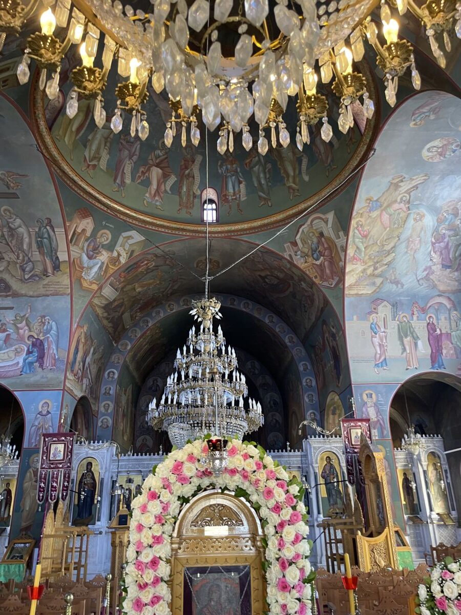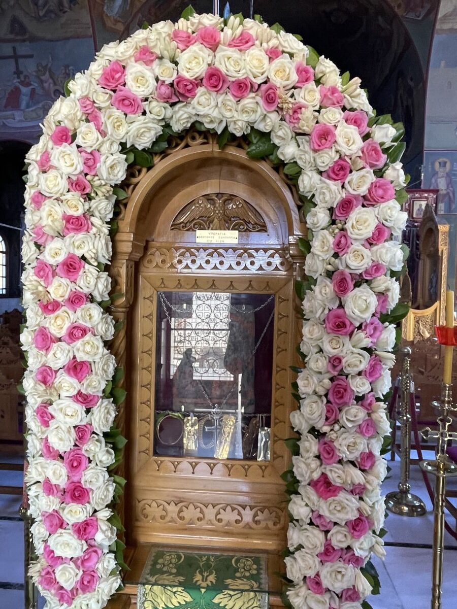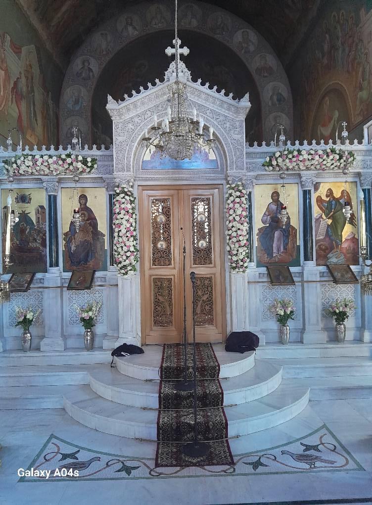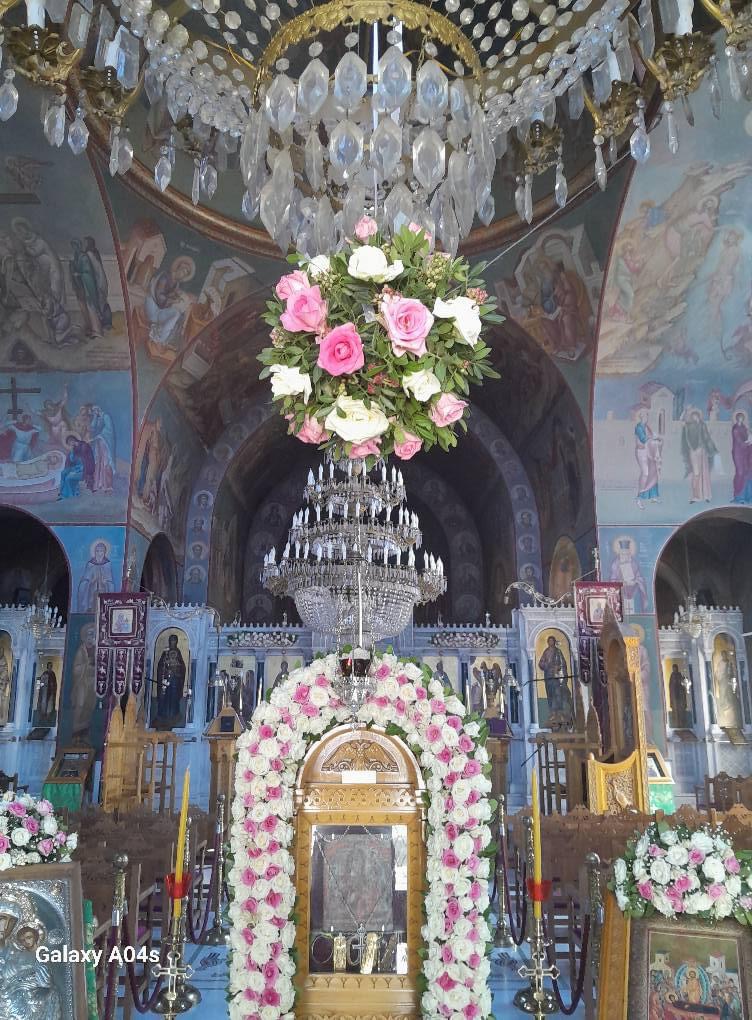 Η εκκλησία αυτή αύριο γιορτάζει και στολίσμενη  με λευκά και ροζ τριαντάφύλλα είναι έτοιμη να υποδεχθεί τους πιστούς όχι μόνο της ενορίας .