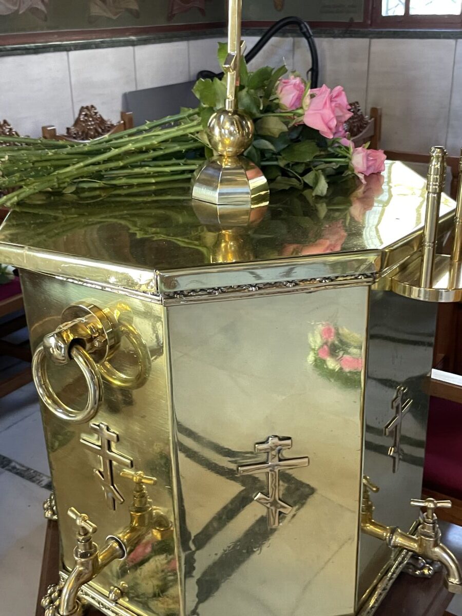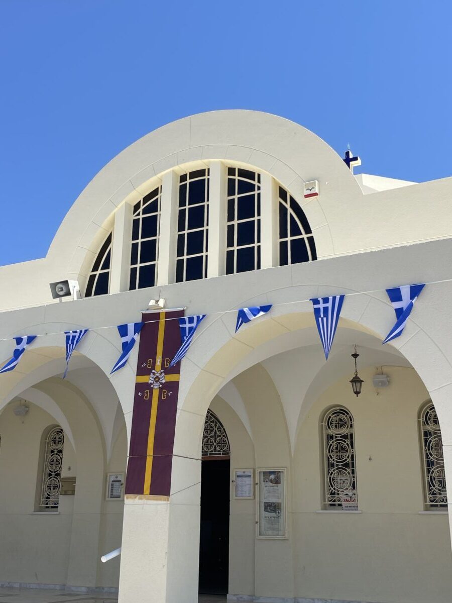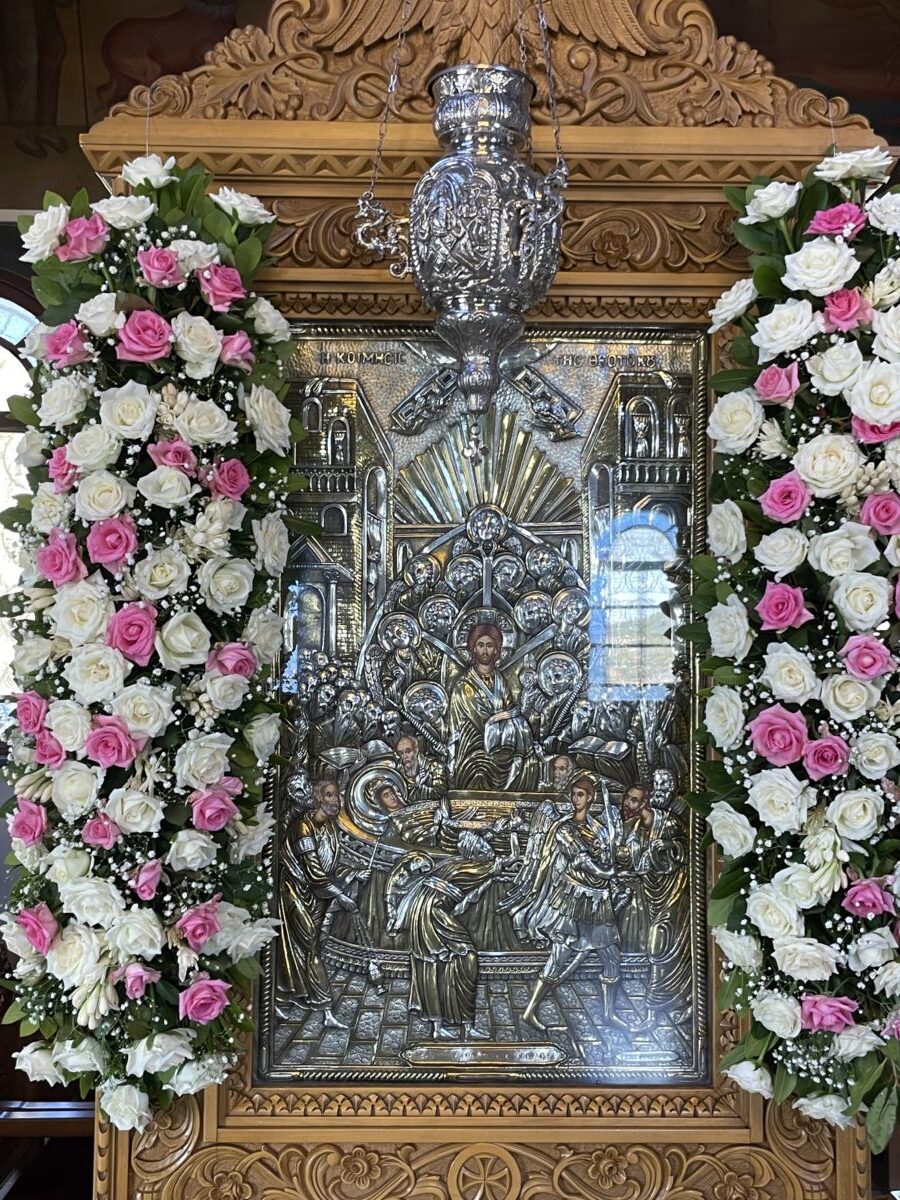 Η εκκλησία αυτή αύριο γιορτάζει και στολίσμενη  με λευκά και ροζ τριαντάφύλλα είναι έτοιμη να υποδεχθεί τους πιστούς όχι μόνο της ενορίας .