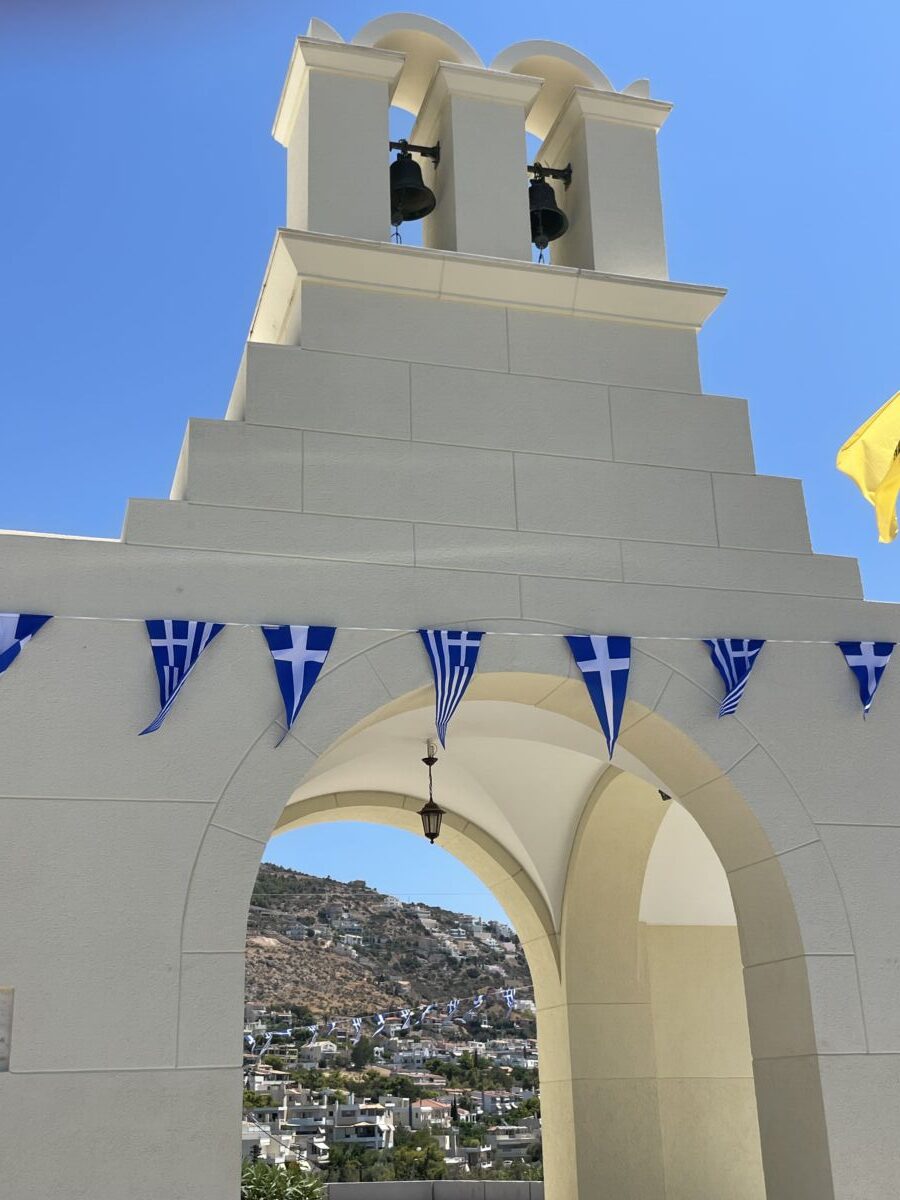 Μια κατάλευκη εκκλησία που θυμίζει Ελληνικό νησί κτισμένη πάνω στον λόφο που δεσπόζει του οικισμού της Σαρωνίδας και έχει αμφιθεατρική θέα σε όλο τον Σαρωνικό.