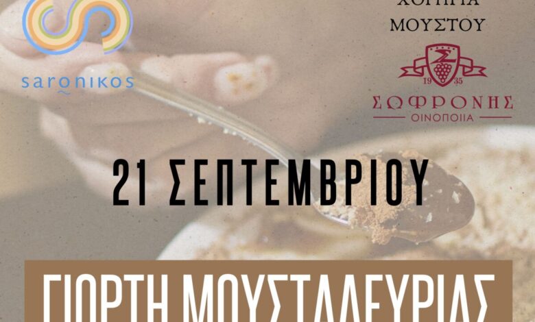 Δήμος Σαρωνικού : Γιορτή Μουσταλευριάς- Σάββατο 21 Σεπτεμβρίου, πλατεία Καλυβίων