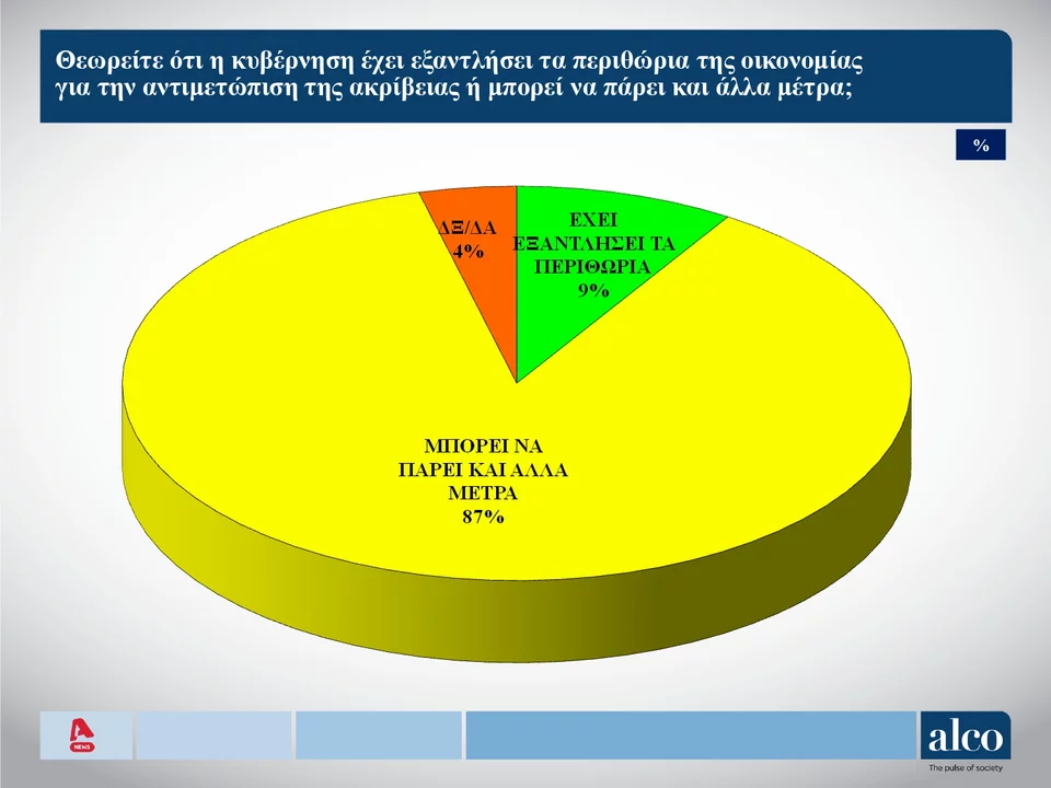 Τη δυσαρέσκειά τους για το ζήτημα της ακρίβειας εκφράζουν οι πολίτες, ζητώντας περισσότερα μέτρα, ενώ βλέπουν ότι πρόκειται για εσωτερικό ζήτημα. Οι ερωτηθέντες εκτιμούν κατά 38% ότι δεν γίνεται επαρκής αριθμός ελέγχων, ενώ το 28% κάνει λόγο για παθογένειες της ελληνικής αγοράς.