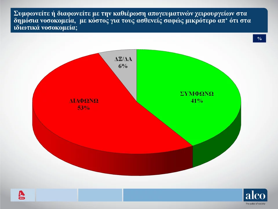 Στο ζήτημα των απογευματινών χειρουργείων, το 53% διαφωνεί, ενώ το 41% συμφωνεί.