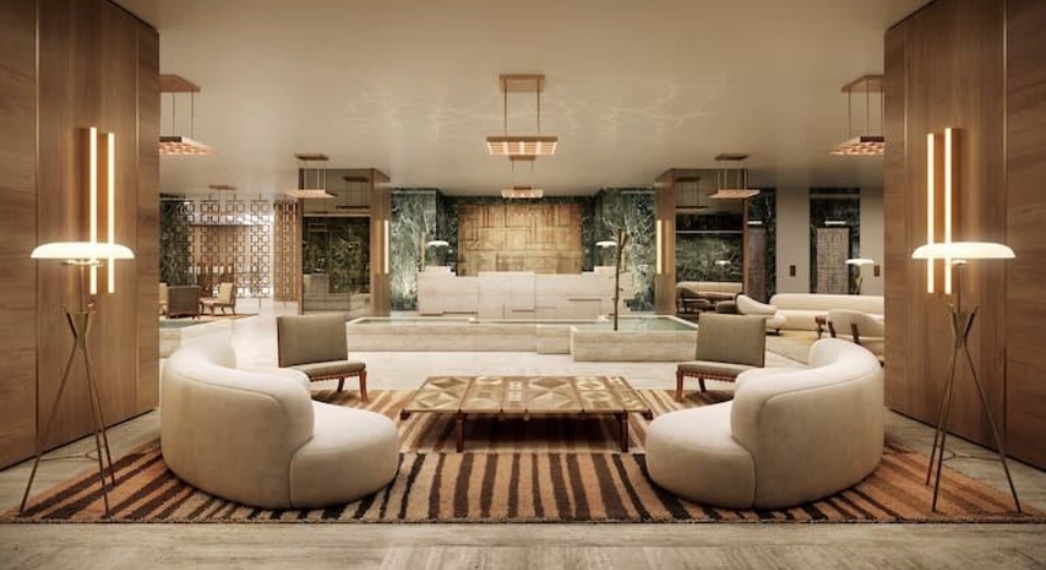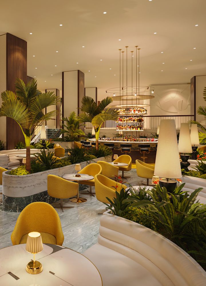 Το lobby διαμορφώθηκε μέσα από μια διαδικασία συν σχεδιασμού μεταξύ των AvroKO και MARE Studio, με τη MARE Studio να καθορίζει την κεντρική ιδέα και κατεύθυνση του interior design.