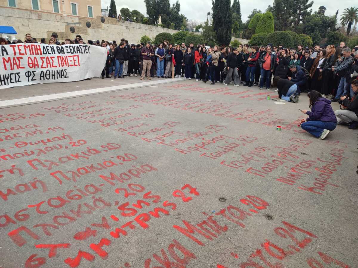 Έγραψαν με κόκκινη μπογιά τα ονόματα των θυμάτων των τέμπη μπροστά από τον Άγνωστο Στρατιώτη (Φωτό )