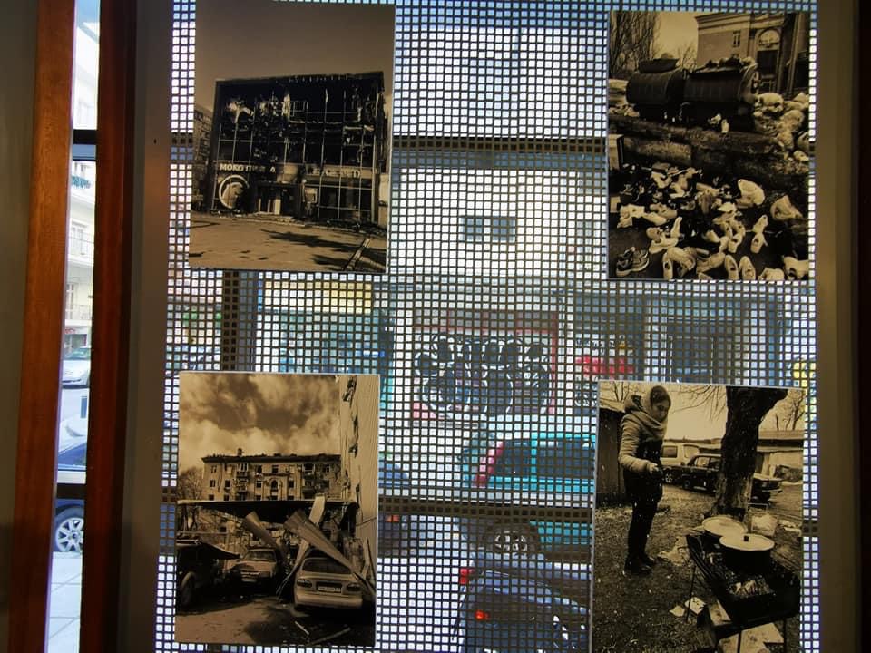 Οι φωτογραφίες της ειρηνικής πόλης των δεκαετιών του 1990 και του 2000 παράχθηκαν από τον Βασίλη Κουτρουμάνο και οι φωτογραφίες των κατεστραμμένων από τη Ρωσία στην Ουκρανία από τον Σεργίϊ Μακάροβ.