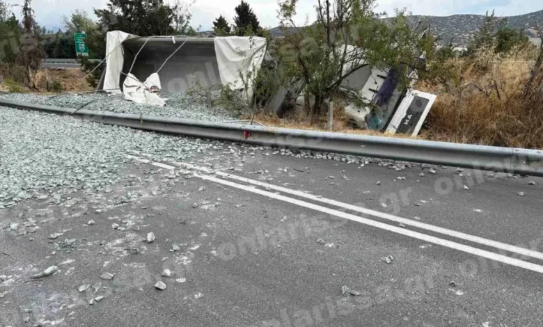 Εκτροπή νταλίκας στην εθνική οδό έξω από τη Λάρισα