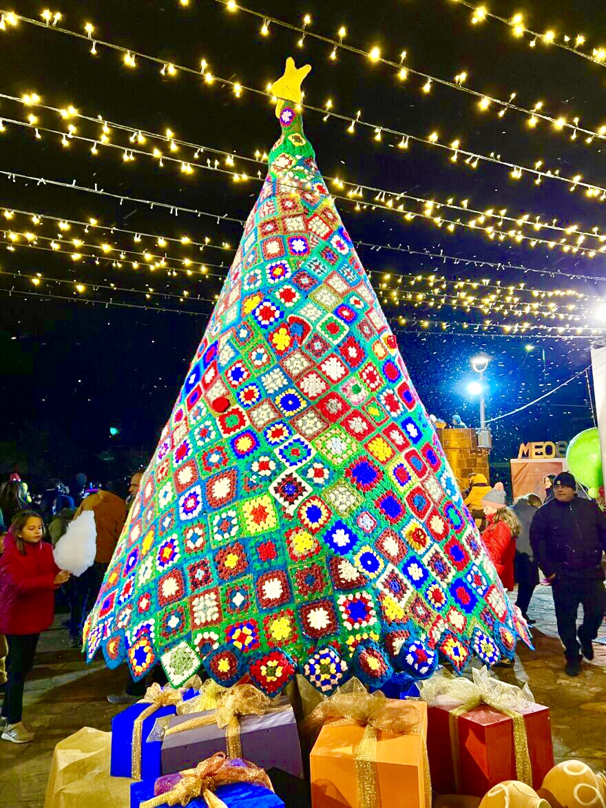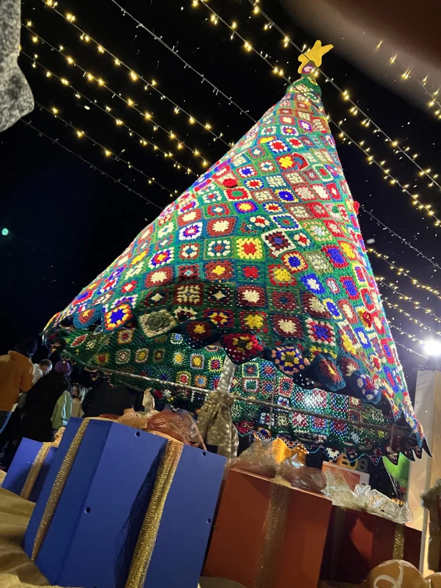 Έν «πλεκτό» Χριστουγεννιάτικο δένδρο εντυπωσιάζει στην Χίο