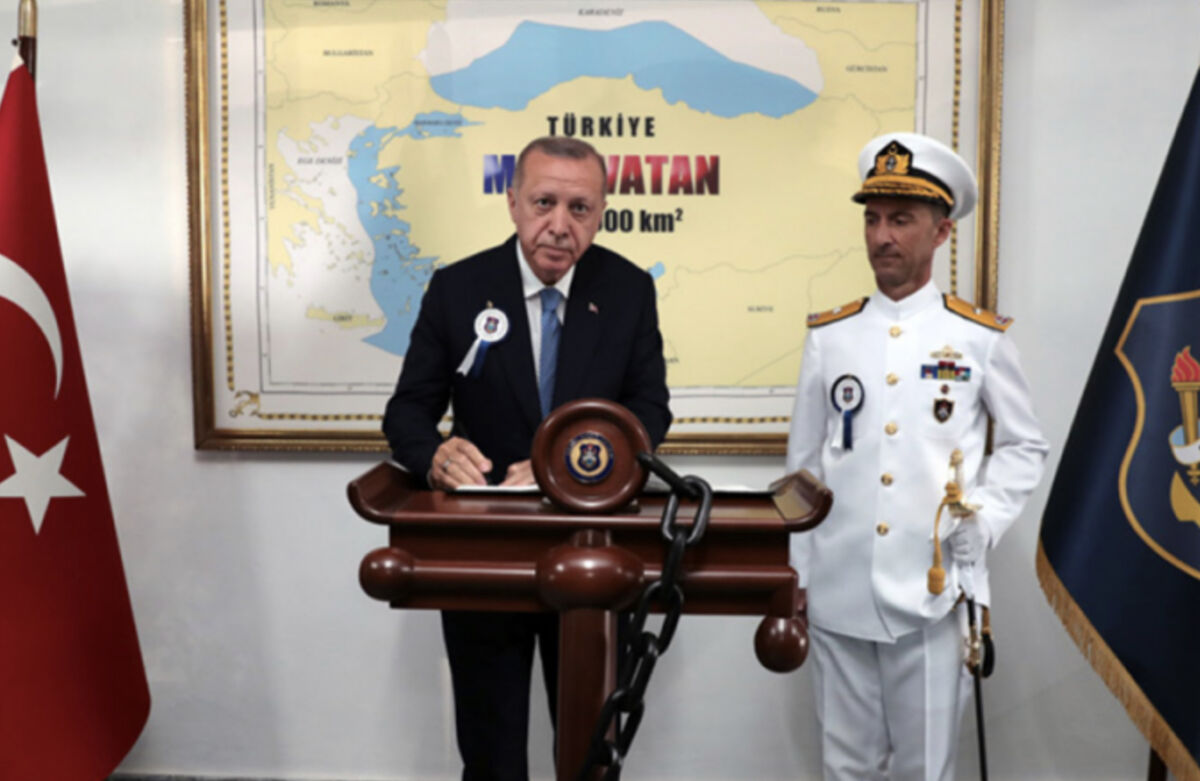 Τέλος σε φωτογραφία η οποία δημοσιεύτηκε στον επίσημο ιστότοπο της προεδρίας εικονίζει τον κ. Ερντογάν να υπογράφει το βιβλίο επισκεπτών στο Πανεπιστήμιο Εθνικής Άμυνας ενώ στο φόντο εμφανίζεται μεγάλος κορνιζαρισμένος χάρτης όπου αποτυπώνεται το…Τουρκικό Αιγαίο.