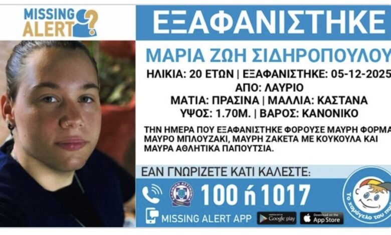 Εξαφάνιση 20χρονης στο Λαύριο: Αγωνία για την τύχη της Μαρίας–Ζωής