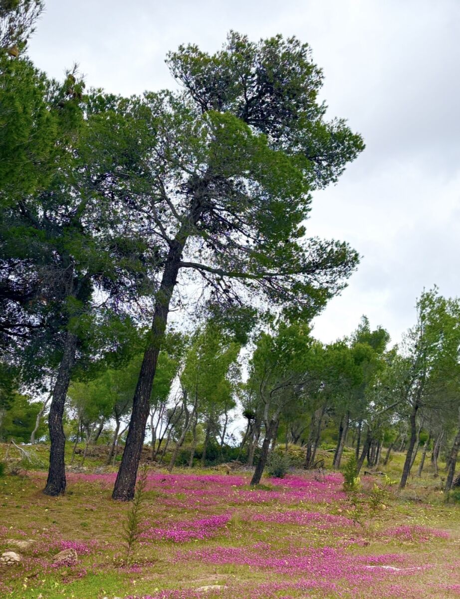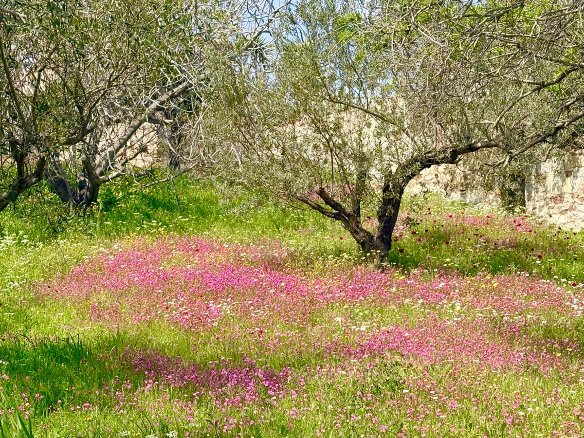 Την άνοιξη, ο δρυμός μεταμορφώνεται. Τα αγριολούλουδα ανθίζουν παντού, γεμίζοντας το τοπίο με χρώματα — κίτρινα, μοβ, κόκκινα και λευκά — και δημιουργούν ένα μοναδικό, σχεδόν ζωγραφικό σκηνικό. Η αντίθεση ανάμεσα στο πράσινο της φύσης, το γαλάζιο του Αιγαίου και τα γήινα χρώματα του εδάφους κάνει τη βόλτα εδώ μια εμπειρία που δύσκολα συγκρίνεται.