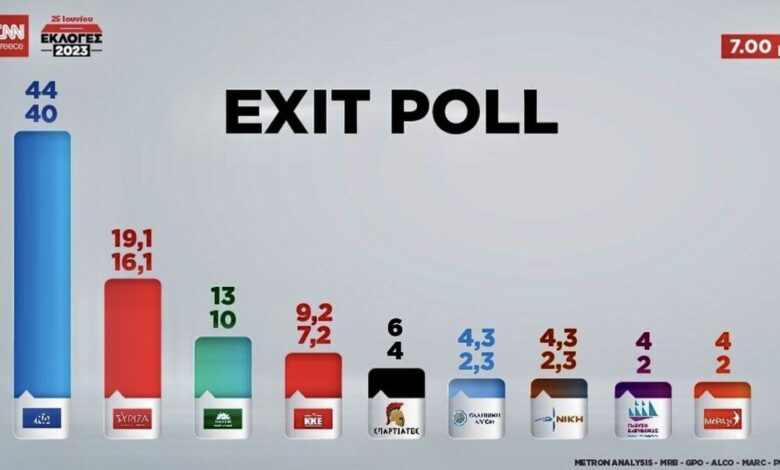 Exit poll : Αυτοδυναμία στη ΝΔ κατάρρευση του ΣΥΡΙΖΑ – Κερδισμένα τα μικρά κόμματα