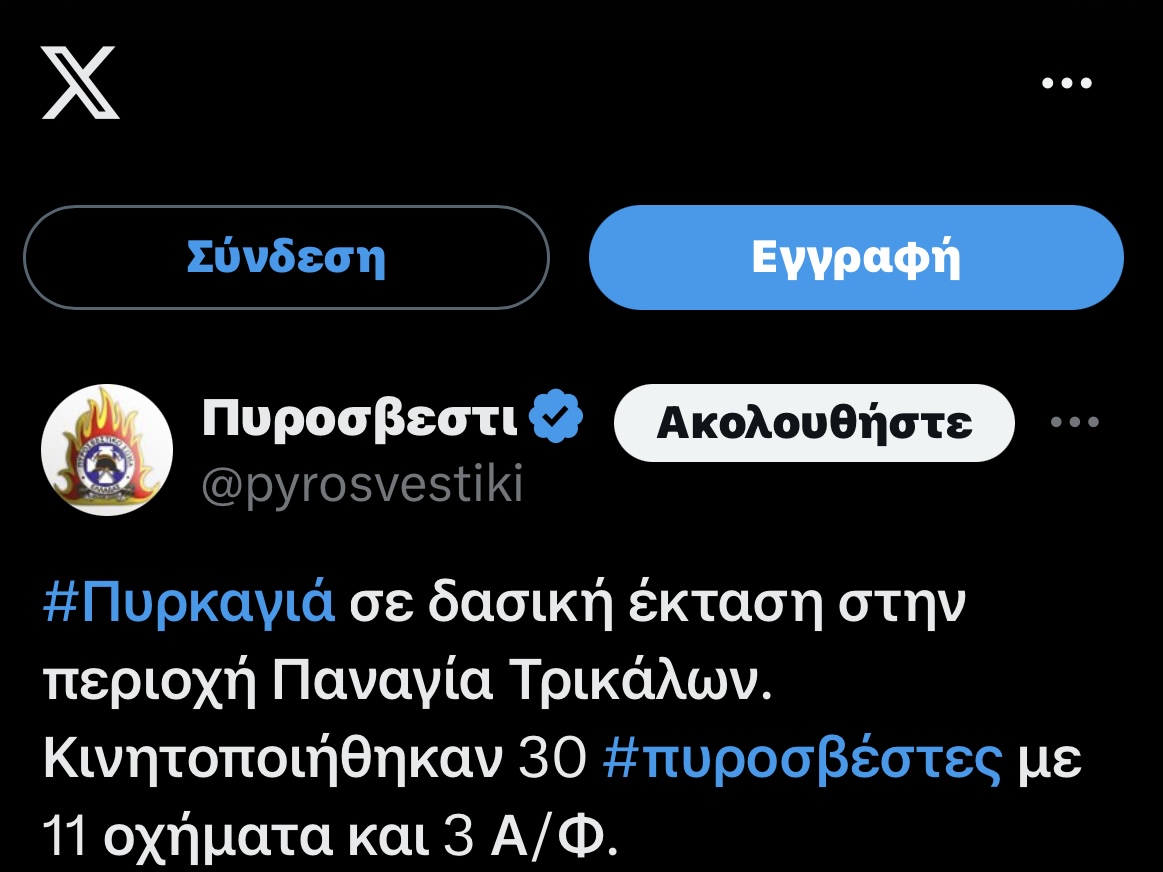 Φωτιά εκδηλώθηκε σε δασική έκταση στα Τρίκαλα , και συγκεκριμένα στην περιοχή Παναγία, με την κινητοποίησης 30 πυροσβεστών με 11 οχήματα και 3 Α/Φ.