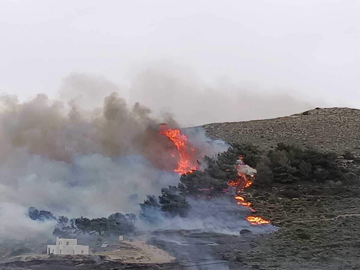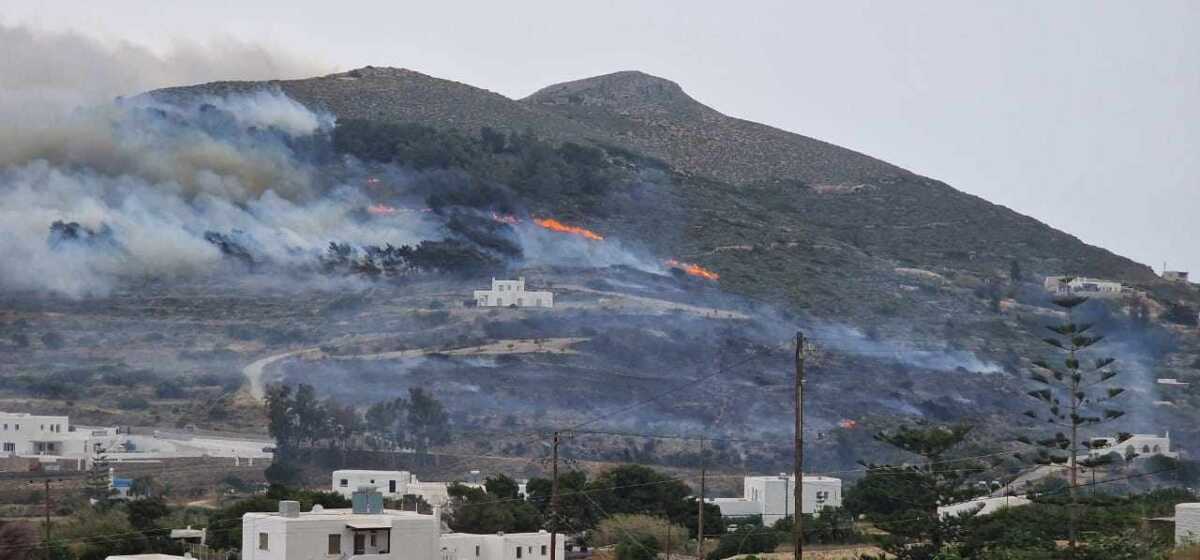 Φωτιά σε εξέλιξη στην Πάρο, καίει πολύ κοντά σε σπίτια – Ήχησε το 112 για εκκένωση της περιοχής