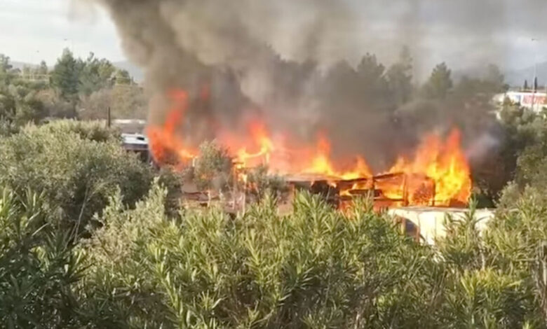 Φωτιά σε καταυλισμό Ρομα στην Παιανία