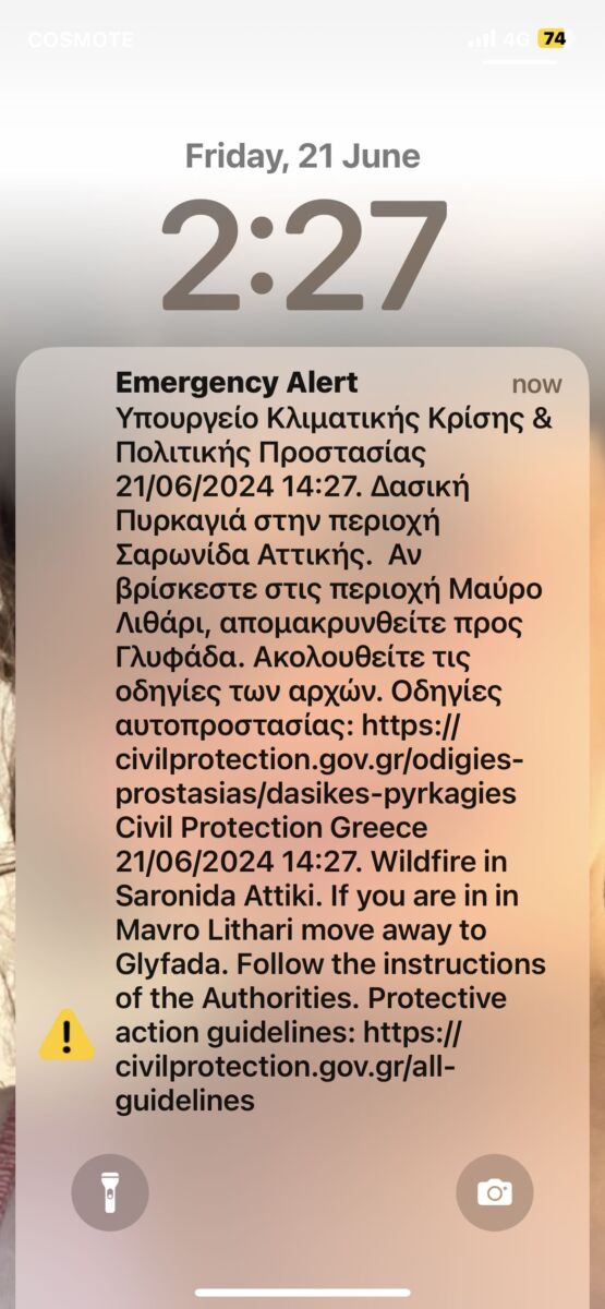 Μάλιστα, λίγο μετά τις 2 το μεσημέρι ήχησε και το 112, που αναφέρει: «Παραμένετε σε ετοιμότητα και ακολουθείτε τις οδηγίες των Αρχών.