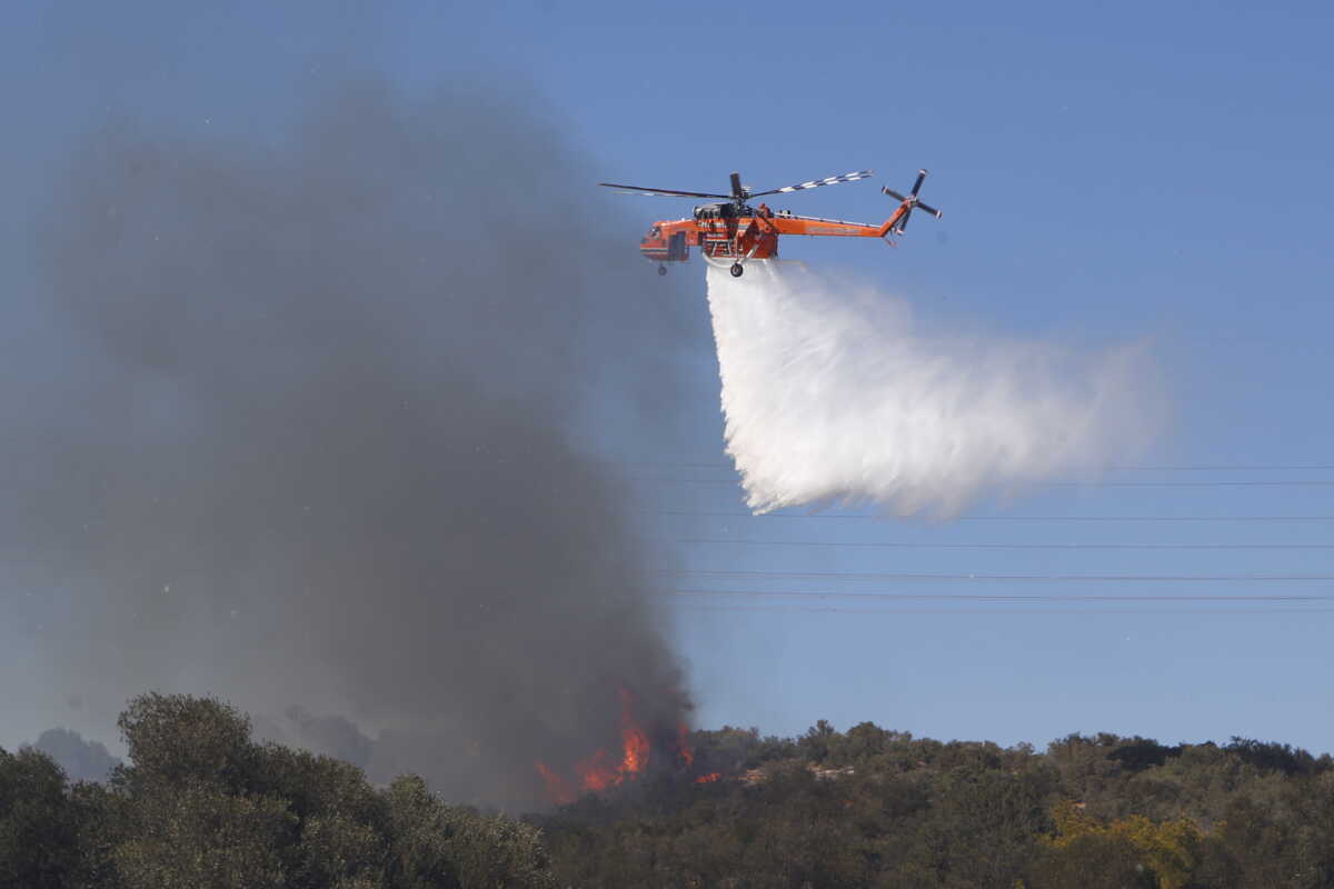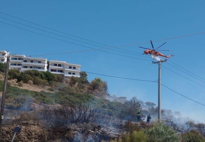 Στο Μαύρο Λιθάρι, η φωτιά καίει κοντά σε σπίτια, πάνω στη Λεωφόρο Σουνίου.