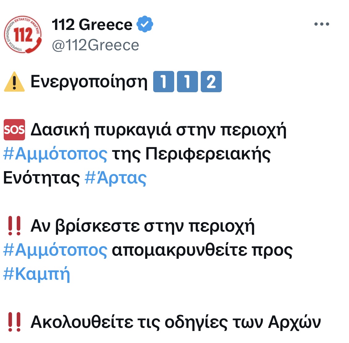 Γύρω στις 10:30, εστάλη προειδοποιητικό μήνυμα από το 112 προς τους κατοίκους της περιοχής, με οδηγίες για προληπτικά μέτρα και αποφυγή μετακινήσεων προς το σημείο.