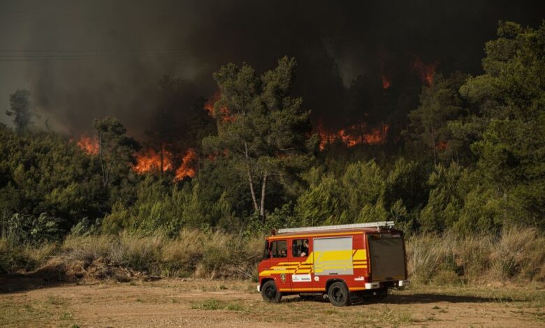 Στο σημείο επιχειρούν επίγειες δυνάμεις ενώ συνεισφορά παρέχουν και δύο ελικόπτερα.