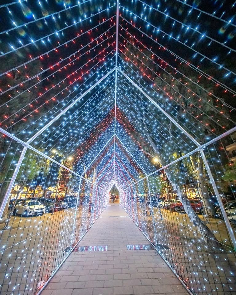 Φθάνοντας στην πλατεία Εσπερίδων, υπάρχει η τεράστια Χριστουγεννιάτικη μπάλα και προχωρώντας στην πλατεία Νυμφών μέσα από τις απίθανα στολισμένες καφετέριες και τα μαγαζιά της περιοχής, θαυμάζεις το υπέροχο γαϊτανάκι με το αστέρι στην κορυφή του.
