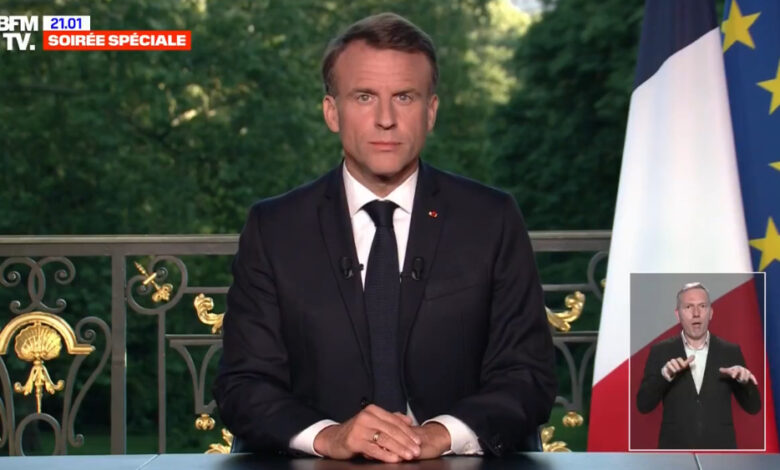 Σε μια σπάνια κίνηση – να απευθύνει διάγγελμα μετά από ευρωεκλογές – ο Μακρόν ανακοίνωσε ότι διαλύει το κοινοβούλιο και προκηρύσσει εκλογές για τις 30 Ιουνίου, καθώς ήδη στελέχη από το κόμμα της Λε Πεν, όπως ο Ζορντάν Μπαρντελά, έθεταν θέμα πρόωρων εκλογών.