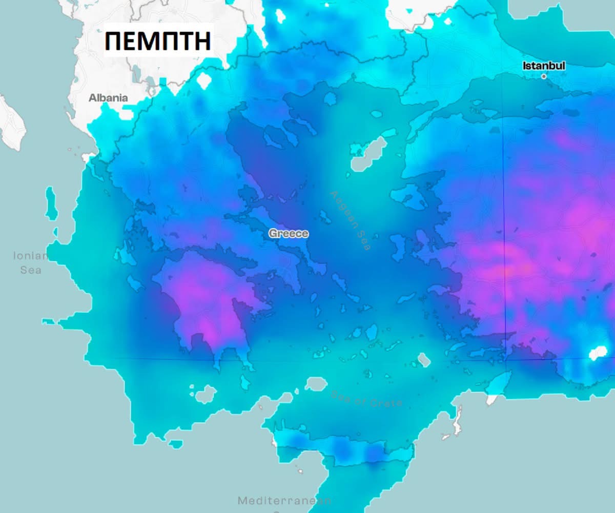 Από την Πέμπτη η μεταβολή αυτή θα απασχολήσει ακόμη περισσότερες περιοχές, επηρεάζοντας και νοτιότερα ηπειρωτικά και νησιωτικά τμήματα της χώρας, με έναν κάπως πιο γενικευμένα άστατο καιρό κατά διαστήματα. Πάντως αξίζει να σημειωθεί ότι κατά κανόνα οι βροχές που θα σημειωθούν τη νέα εβδομάδα δεν θα προκαλέσουν προβλήματα, τουλάχιστον στα περισσότερα τμήματα (τρίτος χάρτης 24ωρου υετού, της Πέμπτης).