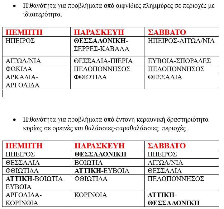 Συγκεκριμένα, αναφέρει: «”Από τις 12 μέχρι τις 19.00 (περίπου) καθημερινά μέχρι την Κυριακή (1/9 ) φαινόμενα που δυνητικά μπορεί να δημιουργήσουν προβλήματα…”