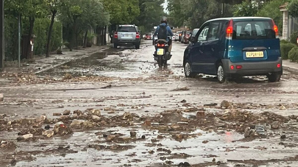 Η καταιγίδα γέμισε την Λ.Βουλιαγμένης με πέτρες-απίστευτες εικόνες
