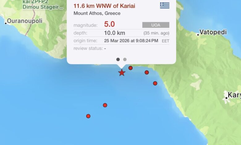 Ισχυρός σεισμός στο Άγιο Όρος 5 ρίχτερ