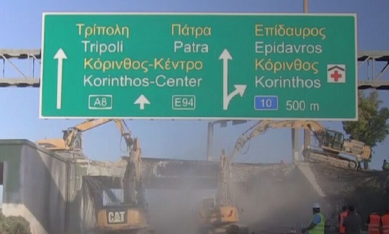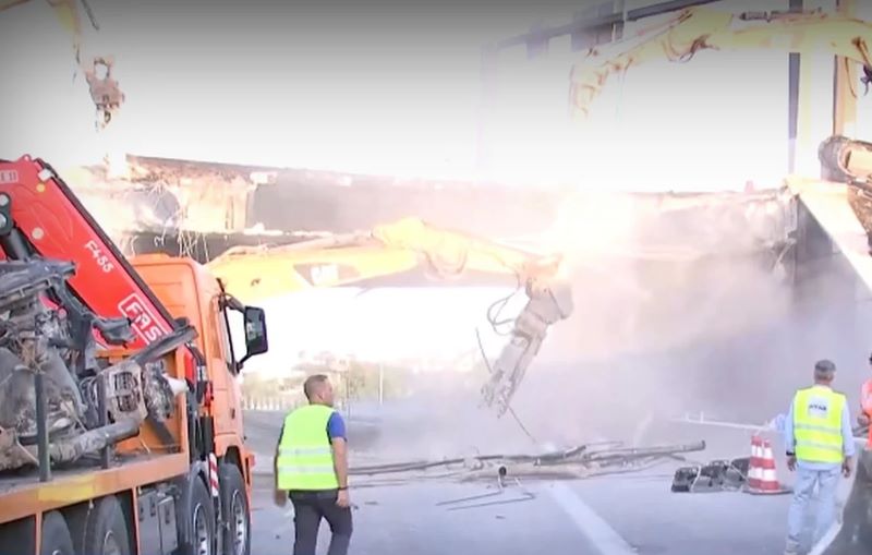 Γκρεμίζουν τη γέφυρα η οποία βρίσκεται λίγο πριν από τον Ισθμό της Κορίνθου μετά τις εκρήξεις από ανατροπή βυτιοφόρου.
