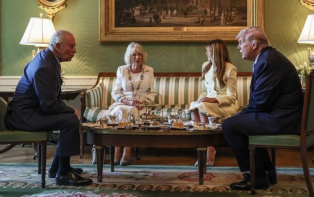 Σύμφωνα με το επίσημο πρόγραμμα, στις 16:15 τοπική ώρα (23:15 ώρα Ελλάδας), ο Ντόναλντ Τραμπ υποδέχθηκε τον βασιλιά Κάρολο και τη βασίλισσα Καμίλα στο νότιο περιστύλιο του Λευκού Οίκου σε μια τελετή με ιδιαίτερο συμβολισμό και υψηλό διεθνές ενδιαφέρον.