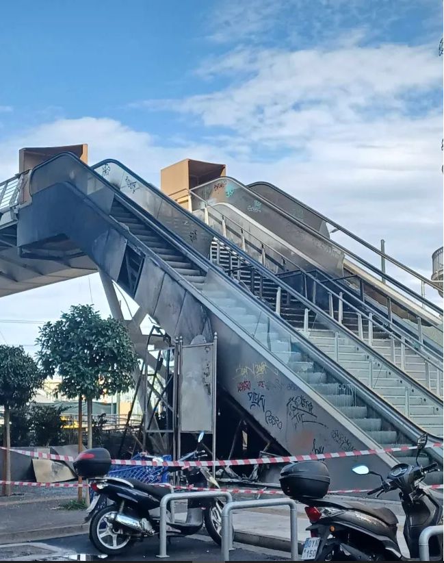 Κάηκαν οι κυλιόμενες σκάλες έξω απο το Μετρό Πειραιά.