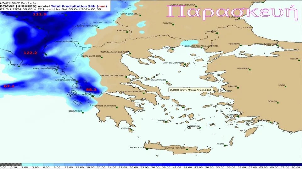 «Στη χώρα μας θα επηρεαστούν από το μεσημέρι της Παρασκευής αρχικά το Βόρειο Ιόνιο και η Ήπειρος και έως το βράδυ τα υπόλοιπα νησιά του Ιονίου, η δυτική Στερεά και η βορειοδυτική Πελοπόννησος, με φαινόμενα πιθανώς κατά τόπους ισχυρά».