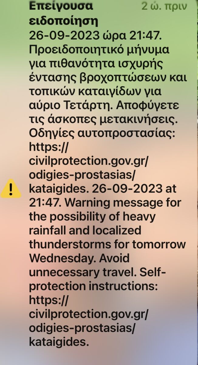 Κακοκαιρία Elias:Νέο μήνυμα από το 112 για την Αττική σήμερα Τετάρτη