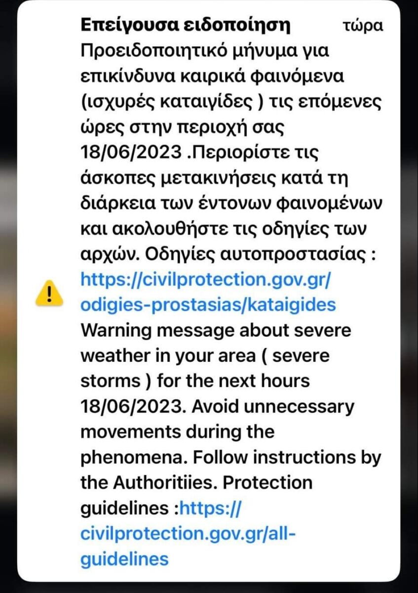 «Περιορίστε τις μετακινήσεις στις απολύτως απαραίτητες και ακολουθείτε τις οδηγίες των Αρχών», αναφέρεται χαρακτηριστικά στο μήνυμα.
