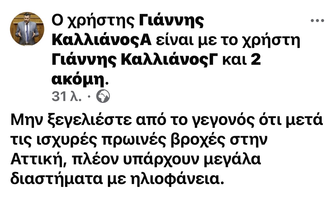 Τον κώδωνα του κινδύνου έκρουσε νωρίς το μεσημέρι της Κυριακής (01.02.2026) ο Γιάννης Καλλιάνος, αναφορικά με την κακοκαιρία που πλήττει την Αττική.