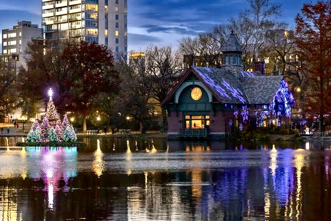 Αν θέλει κανείς λίγη ηρεμία, το Central Park προσφέρει μια πιο ρομαντική πλευρά της πόλης. Η λίμνη παγώνει, οι διαδρομές φωτίζονται και οι άμαξες με άλογα στολίζονται με κόκκινες κορδέλες. Ειδικά μετά το σούρουπο, το πάρκο μοιάζει με παραμύθι.