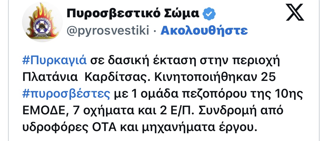 Δεν υπάρχει ενημέρωση για το αν καίει κοντά σε κατοικημένη περιοχή.